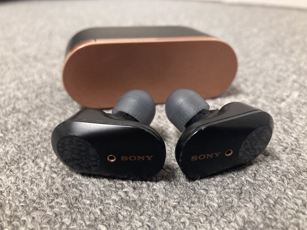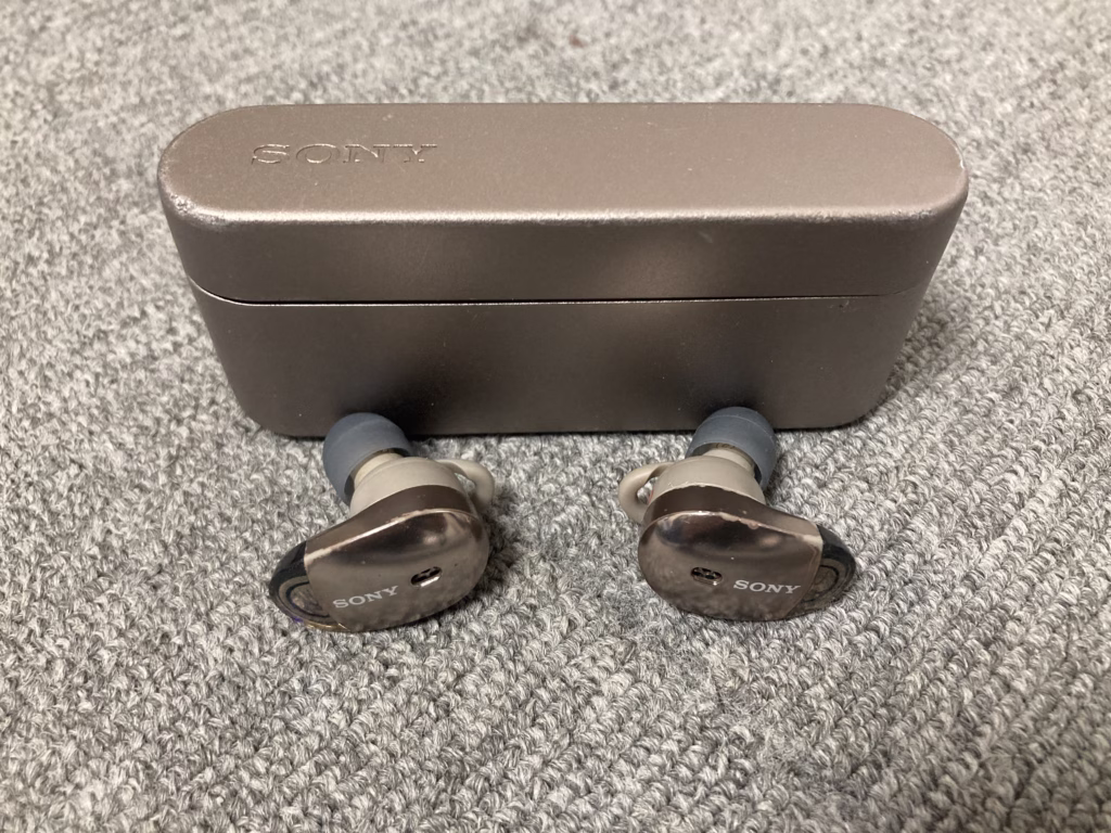 WFシリーズの初代であるWF-1000Xを購入しました!価格は1020円です!この子を買ったのにはちゃんと理由があります。まず一つ目にSONYが過去に出したBluetooth送信機(TMR-BT10)がM3で使えなかったからです。理由としてはイヤホンの接続する方式にありました、1000Xはイヤホン左が親機となり子機である右に音を転送するリレー方式が採用されていました。一方1000XM3は左右のイヤホンが別々に通信する左右独立方式を採用しました。でこのBluetooth送信機はその左右同時通信に対応しておらず、接続しても片方からしか音がしないのです。あと単純に当時の憧れの物だったので今回購入した次第でございます。